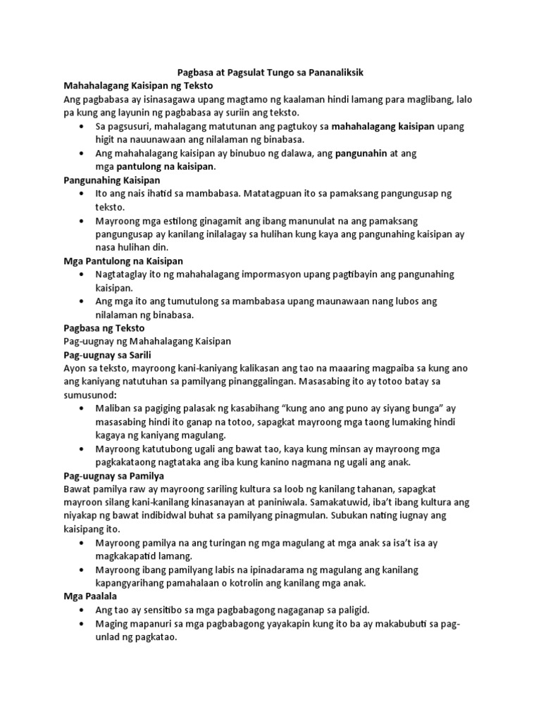 Notes Pagbasa At Pagsulat Tungo Sa Pananaliksik
