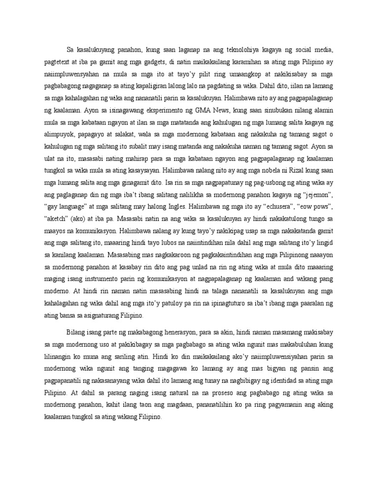 Ang ating bansang Pilipinas ay sagana sa wika at kultura. Politeknikong Unibersidad ng Pilipinas Sta. 07-10-2018 Kahalagahan ng wika at komunikasyon sa pananaliksik at kulturang filipino - 1611110 8000 coins are putting under your account you can get it immediately after you download and install Cashzine the App read the news play game and ea.